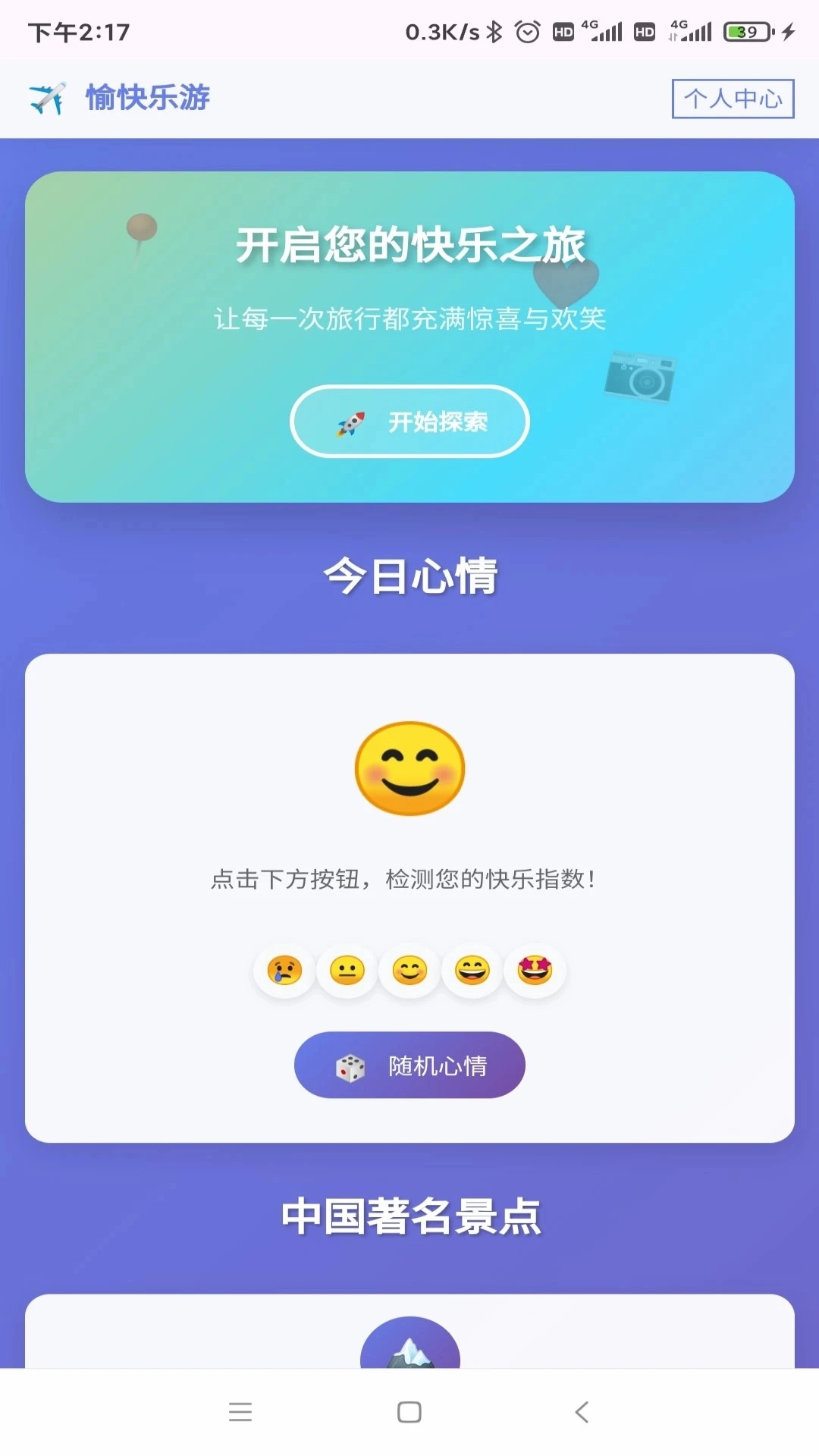 愉快乐游是一款软件,借助它能随时知悉国内景点资源,掌握各类风景信息,及时获取不同景点的介绍。不仅如此,还能随时规划旅程,享受实时了解多样风景的便捷,更全面地知晓旅游相关信息。此外,用户在线高效打卡操作简洁,效率颇高。