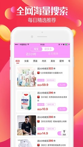 2、它不仅提供了领券优惠的功能,还可以通过分享获得利润,用户可以随时了解全网销售动态。