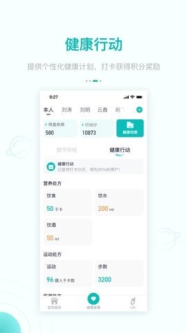 2.健康计划引导居民培养良好的生活方式,帮助居民实现不生病、少生病、生小病的目标,推动把以治病为中心转变为以健康为中心,提供包含健康评估、健康报告、干预方案和今日行动四个主要功能。
