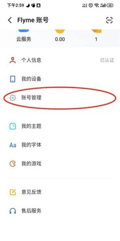 3、之后找到账号管理,点击进入;