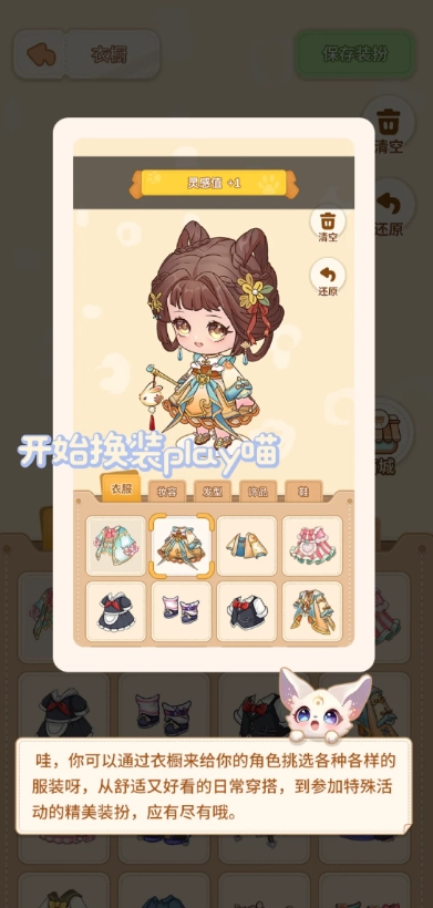 3、哇,你可以通过衣橱来给你的角色挑选各种各样的服装呀,从舒适又好看的日常穿搭,到参加特殊活动的精美装扮,应有尽有哦;