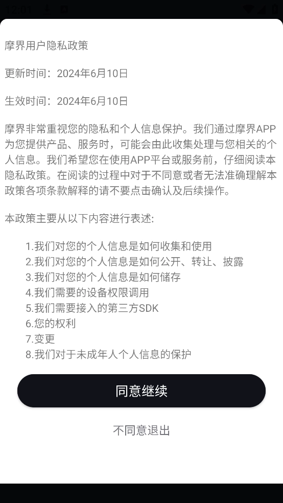 1、可直接使用最新版本的软件,进入时需先同意隐私权限。