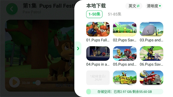 4、选项可选择集数,中英文版本以及清晰度;