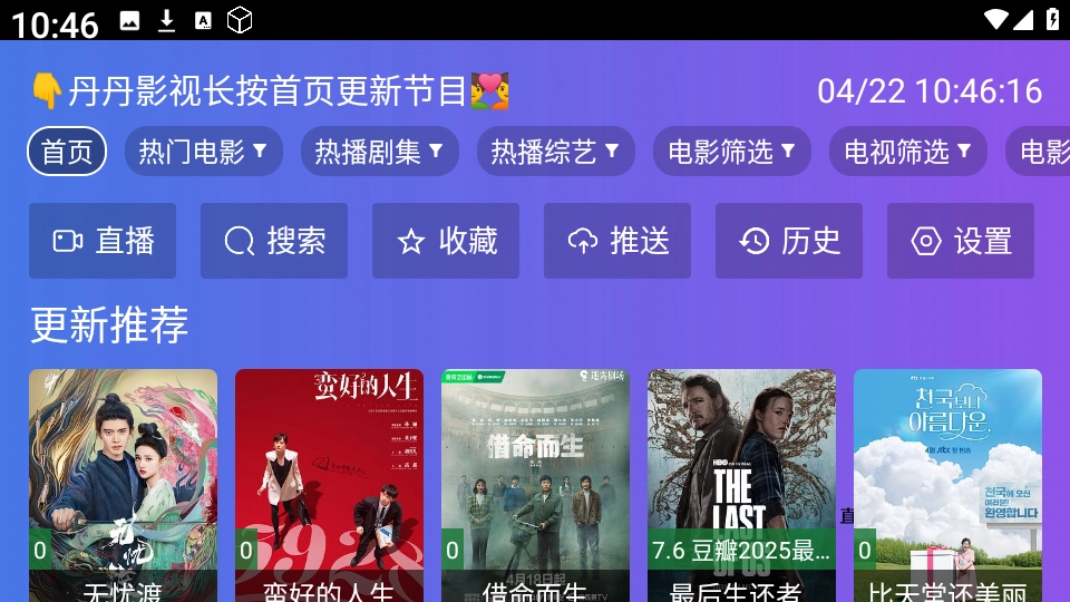 丹丹影视,一款超火的影视播放器,整合海量优质影视资源,更新速度堪称一绝。在这里,无需花费一分钱,就能尽情观看你钟爱的各类影视剧。而且它拥有多个播放源,可自由切换,播放过程极为流畅,绝无卡顿现象。喜爱看剧的朋友们,赶快行动起来吧!