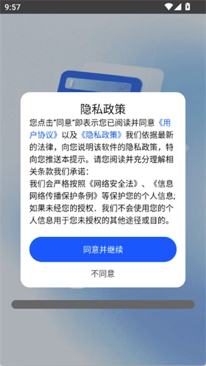 2、打开进入软件,点击同意并继续