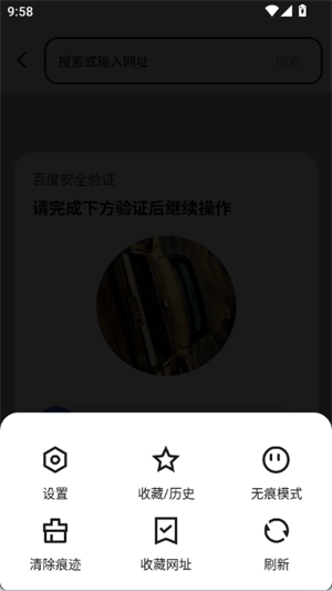 5、点击下方菜单栏,还可以一键清除浏览痕迹,或者开启无痕模式