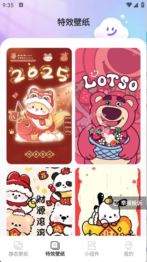 2、在底部栏浏览各种壁纸和组件类型,选择需要的资源。