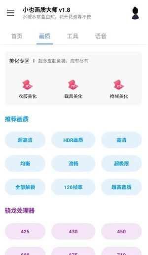 1. 开启小也画质大师,随即进入主界面。在这里,用户能够对多种画质参数以及帧率设置进行调整,助力用户收获更为流畅的视觉感受。