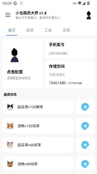 1、进入首页后,我们能够对各类画质及帧率进行修改。