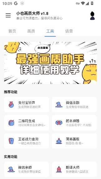 3、在工具界面,则包含微信余额修改、支付宝铃声、二维码生成等实用功能。