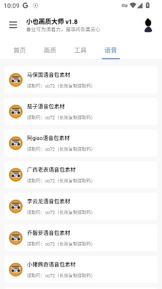 4、在语音栏目,包含了很多知名网红人物的语音素材包。