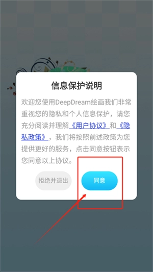 2、打开进入软件,点击同意隐私协议