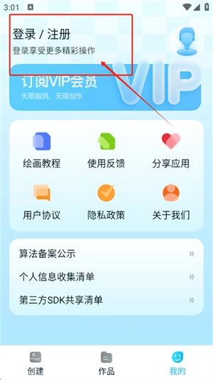 1. 轻点右下角“我的”选项,接着点击“登录/注册”按钮。