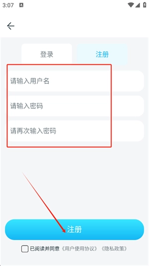 3、在注册页面,输入用户名,设置好密码可以立即注册