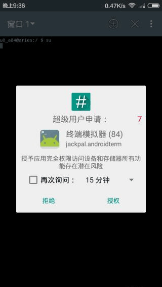 6、测试:使用终端模拟器测试,出现授权界面。