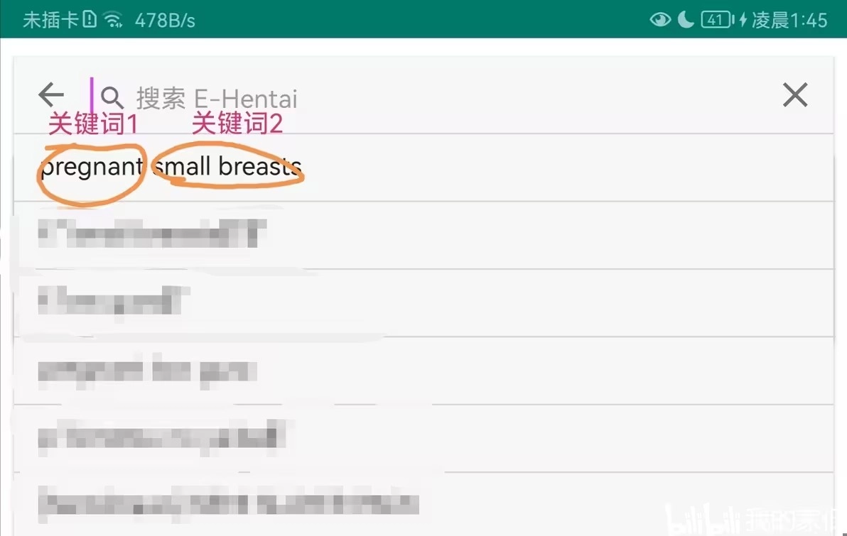 1.打开Ehviewer,点击搜索框,关键词之间加空格,可同时搜索多个关键词,用英文搜索