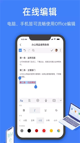 5、用户既能创建新的文档,也能打开并编辑在网络上或其他设备上创建的任意文档。