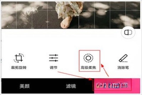 2、进入编辑页面,选择“高级柔焦”功能,进行虚化处理。