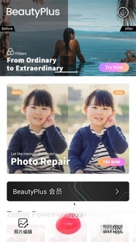 Beautyplus美颜相机堪称一款革新传统的手机拍照利器,以其简洁易用的设计与强劲的功能,收获了国内外亿万用户的喜爱。它能让你轻松跨越自拍时的尴尬阻碍,助力你拍出超萌、搞怪的照片。无论是配上鹿角、猫耳朵,还是添加腮红,丰富的创意素材会为每张照片增添无尽乐趣。而且,其特有的梦幻涂鸦功能,能让你用指尖为照片绘就炫酷光影,激发你内心的艺术潜能。快来体验吧,必定能满足每一位爱美女士的日常所需!