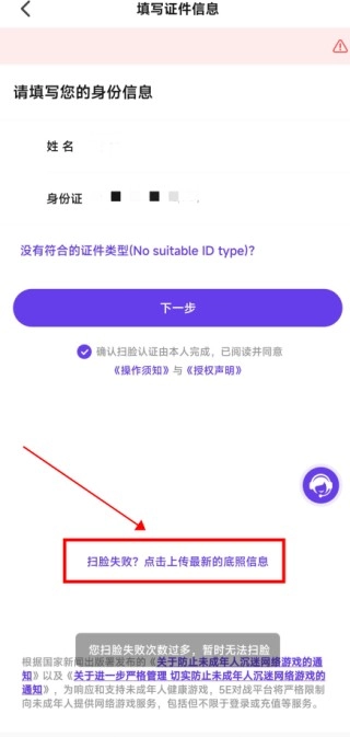 在认证失败界面下方有底照上传入口,请上传底照图片,上传成功会进行审核阶段,1~3个工作日内会进行审核,成功后在进行扫脸认证即可
