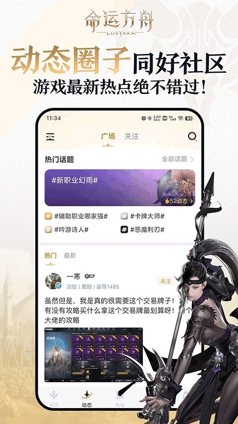 掌上命运方舟,作为腾讯出品的命运方舟游戏手机助手,汇集第一手资讯,助您时刻把握游戏最新动态。不仅如此,掌上命运方舟内各类精品游戏攻略与最全面的活动信息一应俱全,助力您从容应对游戏中的种种挑战。此外,为方便冒险家们交流,特意打造了动态社区、聊天及群聊等功能,使您能随时随地与其他冒险家分享经验、携手成长。