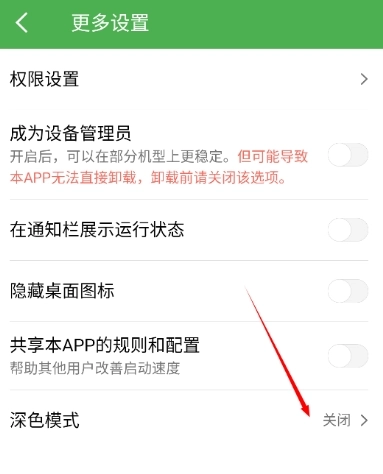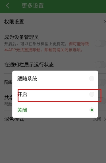 4、点击窗口中的“开启”即可看到应用主题变为了深色效果