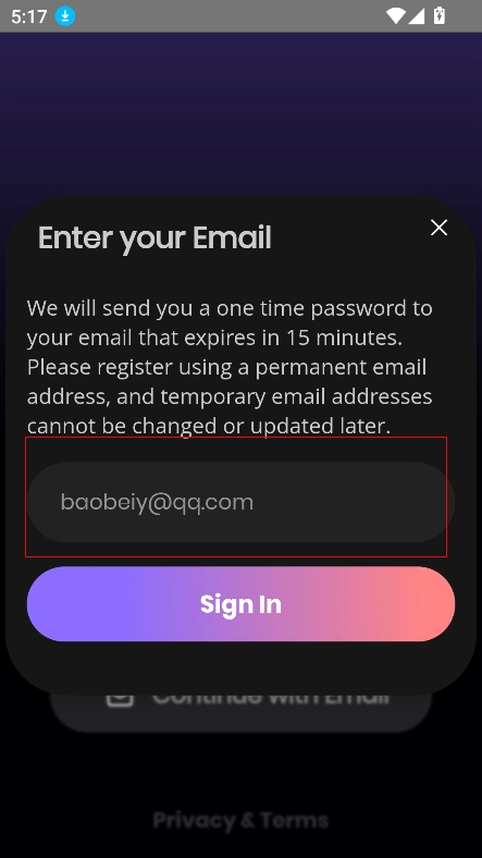 2、例如选择邮箱登录,输入邮箱,点击下方图标