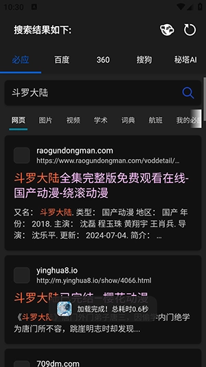 5、在搜索结果页面,提供多个搜索引擎内容,按照自己的需求选择对应的资源即可。