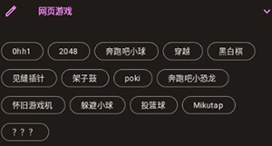 6、网页游戏:Ohh1、2048、奔跑吧小球、穿越、黑白棋、见缝插针、架子鼓、poki、奔跑吧小恐龙、怀旧游戏机、躲避小球、投篮球、Mikutap (这段文本本身表意已较清晰,若只是单纯改写,可调整下顺序)6、网页游戏包含:2048、奔跑吧小球、穿越、黑白棋、见缝插针、架子鼓、poki、奔跑吧小恐龙、怀旧游戏机、躲避小球、投篮球、Mikutap 以及 Ohh1 。