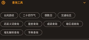 3、查询工具:台风路径、二十四节气、倒数日、交通标志、近返义词查询、星座查询、成语查询、歇后语查询、域名解析查询、字典查询