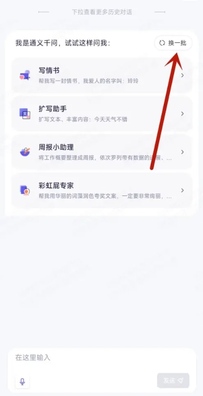 1、打开通义千问,在助手列表右侧,点击换一批。