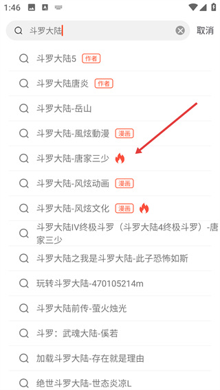 2、在搜索框中输入“斗罗大陆”,查看搜索结果。