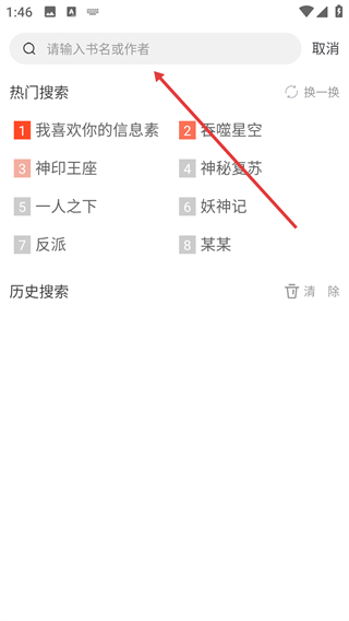 1、点击右上角搜索图标,进入搜索页面。