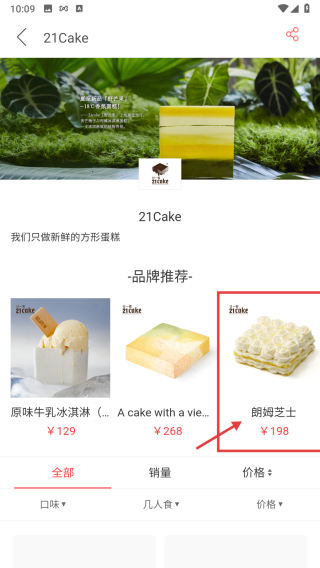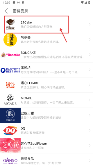 3、在蛋糕品牌列表页面,点击21Cake品牌条目,进入品牌蛋糕页面。