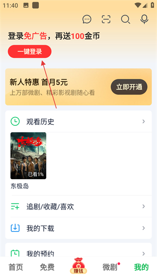 2、在个人页面,点击一键登录,弹出登录窗口进行登录操作。