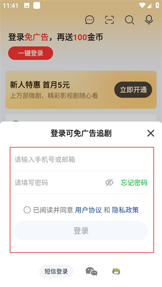 4、在密码登录界面,输入信息,勾选协议后点击登录,完成登录操作。