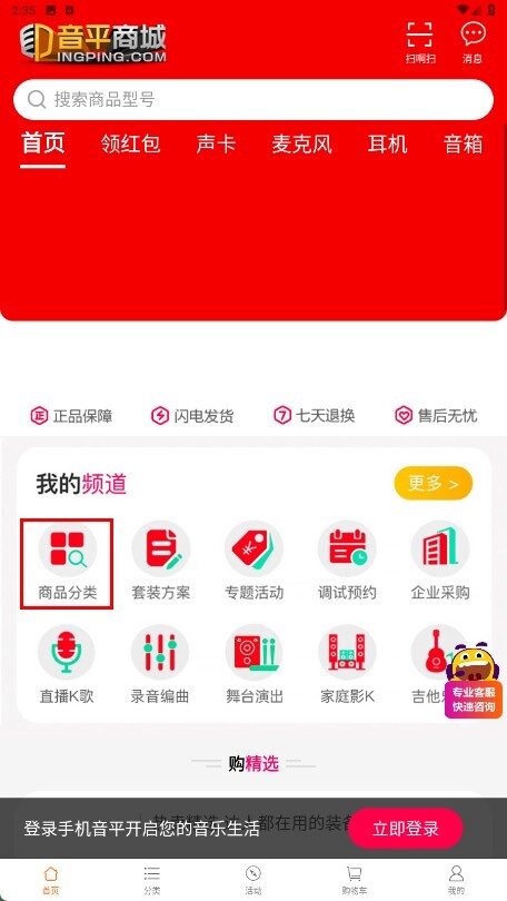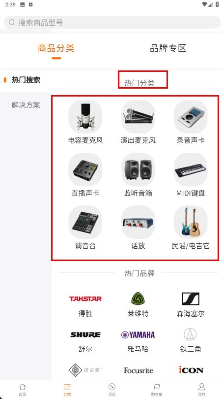 3、在商品分类页面可查看【热门分类-板块】下的电容麦克风、演出麦克风等商品分类。