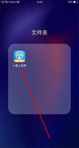 首先点击手机界面上的【懒人驾考】,具体位置可参照下图。