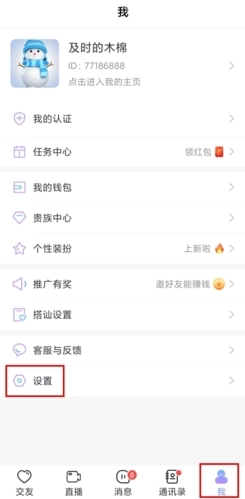 1、在我的页面里点击设置按钮;