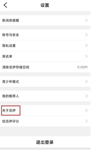 2、在设置页面中点击关于觅伊按钮;