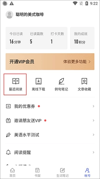 生词学习:文章中长按即可查词并加入生词本,全平台同步,更有卡片播放等复习模式助你学习;