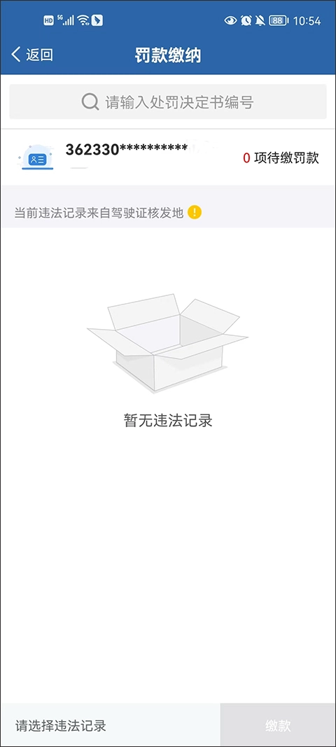 3、用户可以直接输入处罚决定书编号,也可以通过身份证一键查询。