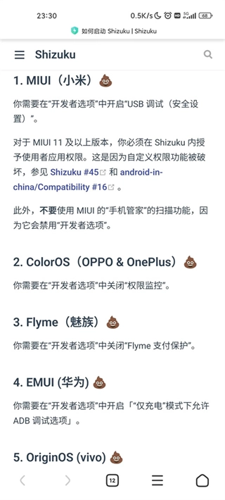安卓11及其以上系统只需根据步骤指南通过无线调试启动Shizuku,步骤指南中有针对常用厂商机型的可能遇到的问题的解决方案