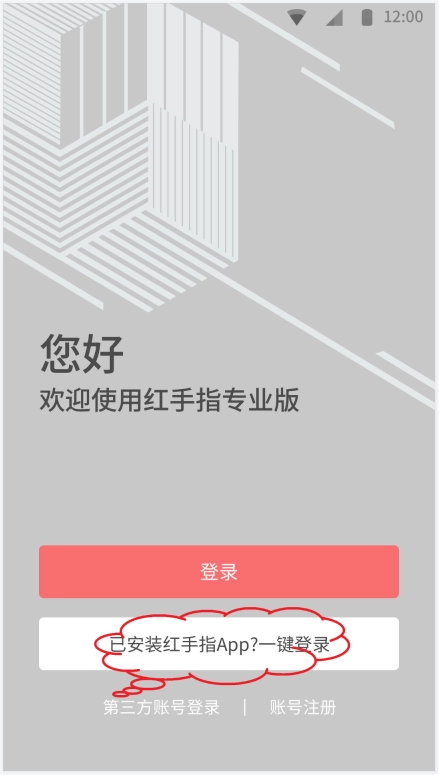 2、若已注册使用过红手指,在获得权限的情况下可以选择一键登录红手指中账号