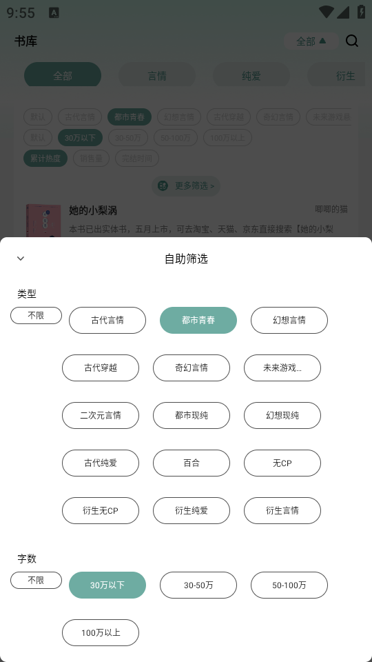 3、选择自己喜欢的类别和小说长短