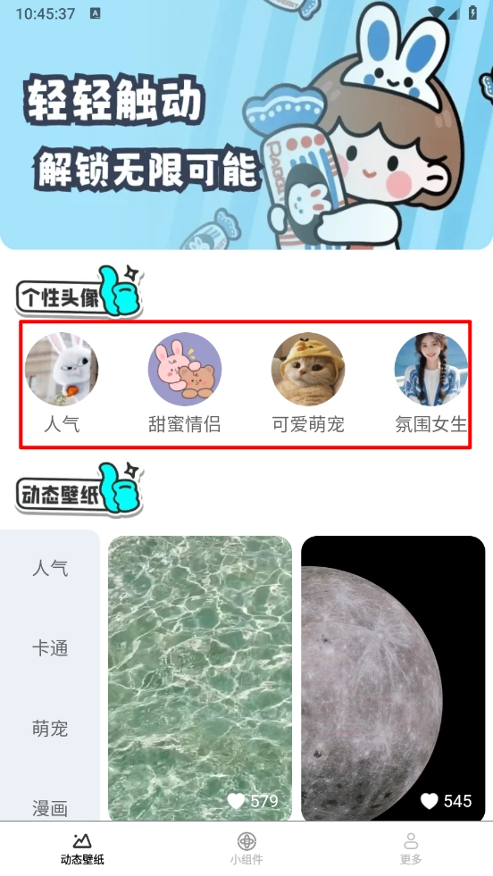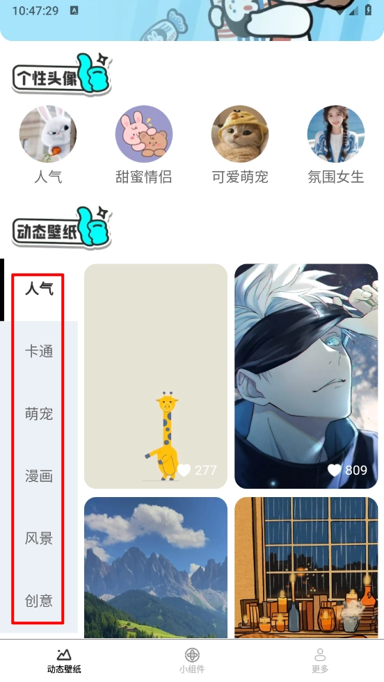 2、在主页涵盖多个个性头像板块,点击进入即可选择喜欢的壁纸。