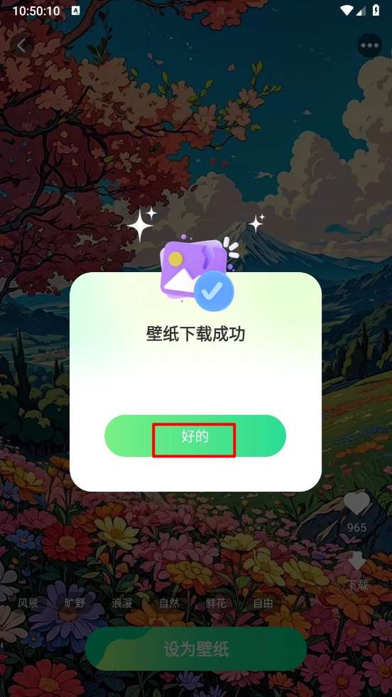 4、弹出弹框,已成功壁纸。