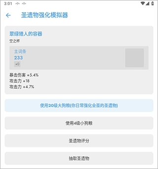 3、选择圣遗物评分,对于游戏攻略热衷的话可以看看,输入圣遗物名称,可以获得详细的介绍,然后会根据属性打出评分