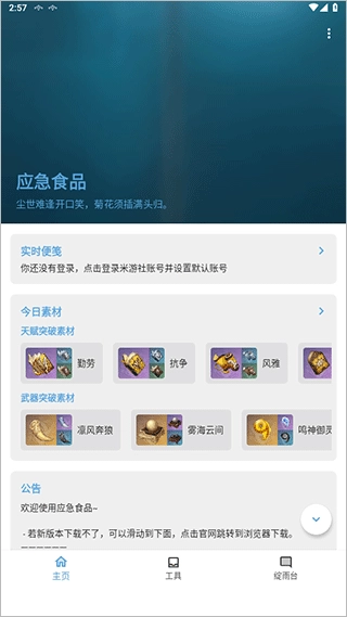 应急食品是一款相当实用的多功能原神游戏辅助工具,用户可以通过它获取大量游戏道具,有效增强在游戏里的生存能力;此外,软件内还设置了不少趣味任务,完成这些任务就能解锁更多奖励。