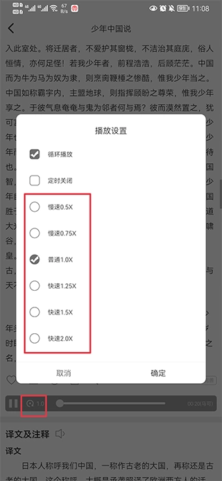 2、在进度条中点击1.0,然后就可以调整到想要的倍速了